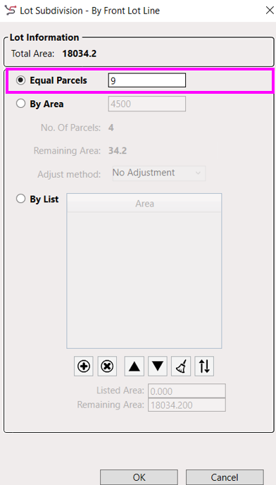 - A Dialogue Box will appear. ‘Equal Parcels’ would be already selected.